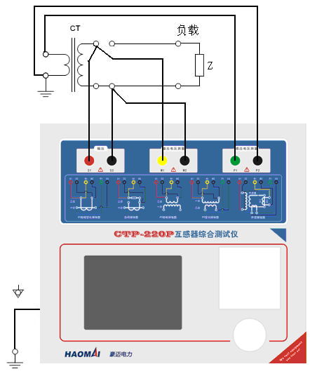 1) 接線方式 :CTP-220P 互感器綜合測試儀S1口M1口接入電流互感器二次側(cè)S1口,測試儀S2口M2口接入互感器二次側(cè)S2口,測試儀P1P2接一次側(cè)兩端。