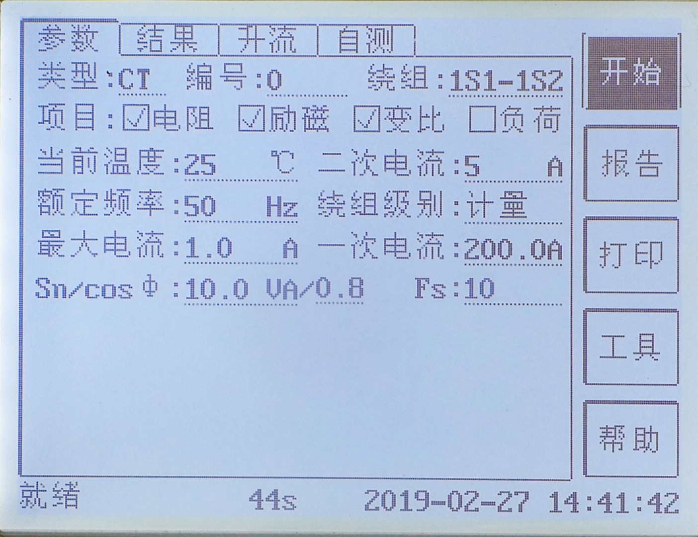 設(shè)置完成后,在確認接線正確的情況下,點擊開始。(此處以1S1 1S2計量繞組為例)