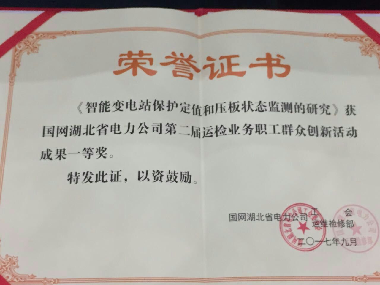 2017年9月,參加“國網(wǎng)湖北省電力公司第二屆運維業(yè)務職工創(chuàng)新實踐活動”比賽,獲得一等獎。