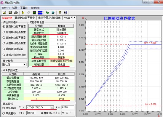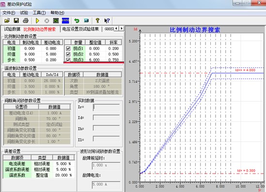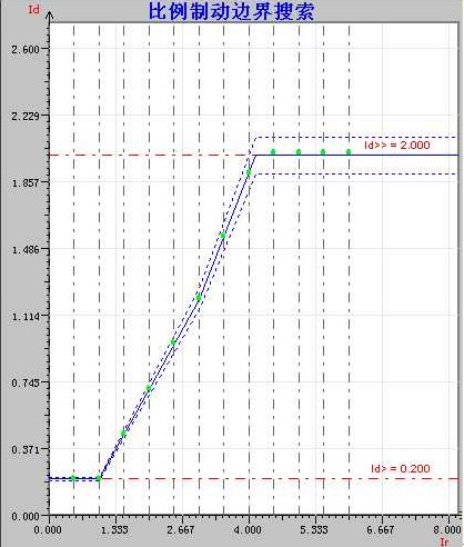 完成上面的設(shè)值之后就可以直接開始試驗了,制動電流與差動電流初值終值步長只會形象圖的美觀度,測試儀會自動的完成比例制動邊界搜索,試驗結(jié)果如圖10所示:
