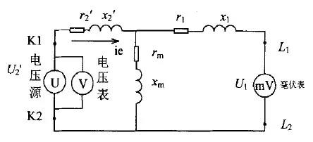 ▲圖1 電壓法測套管CT的變比等效電路圖