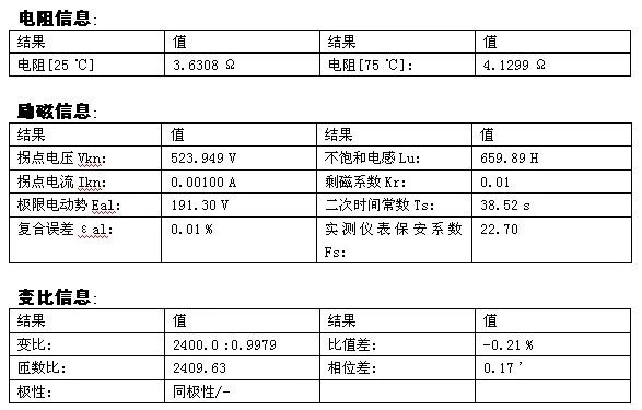 ▲圖3 套管CT試驗結(jié)果數(shù)據(jù)
