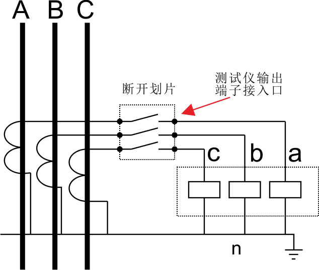 斷開IA、IB、IC、IN端子排上的連接劃片,使保護(hù)裝置與線路斷開
