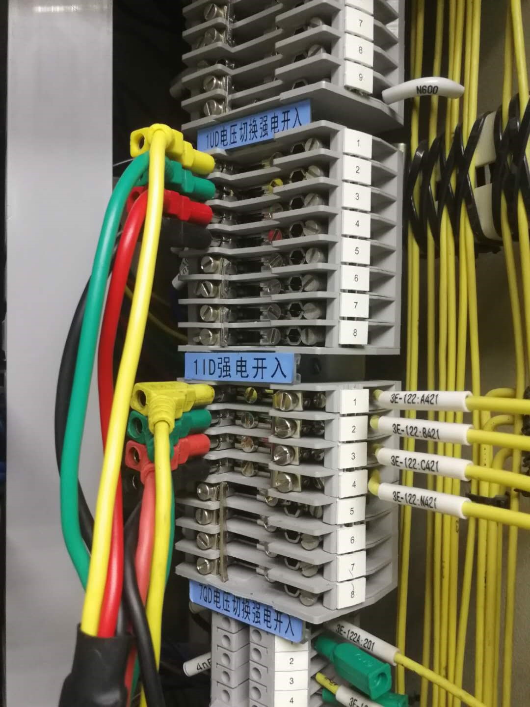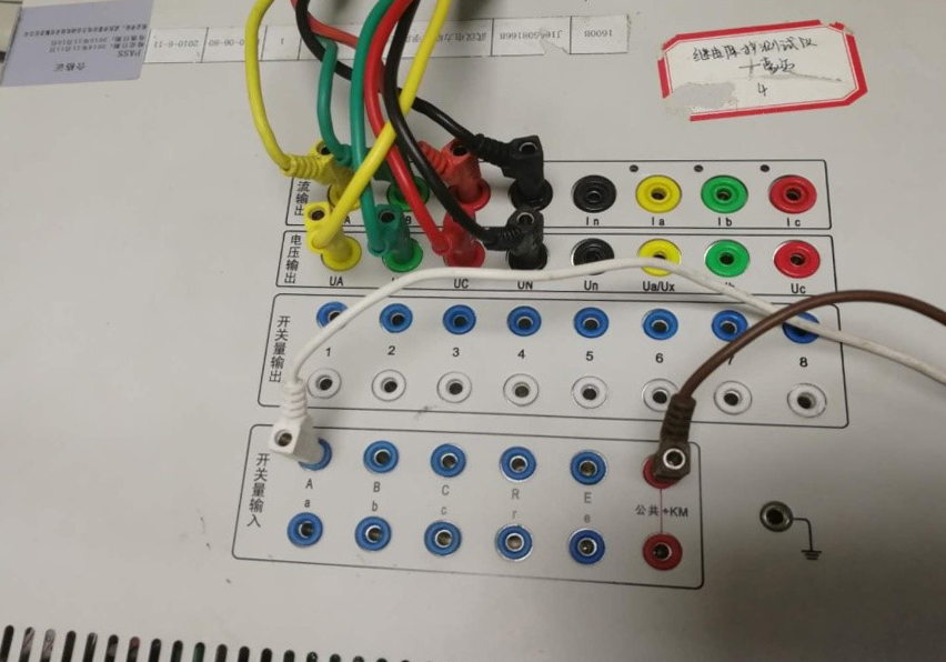 將測試儀的IA、IB、IC、IN輸出端口接入對應(yīng)端子排保護(hù)裝置側(cè)