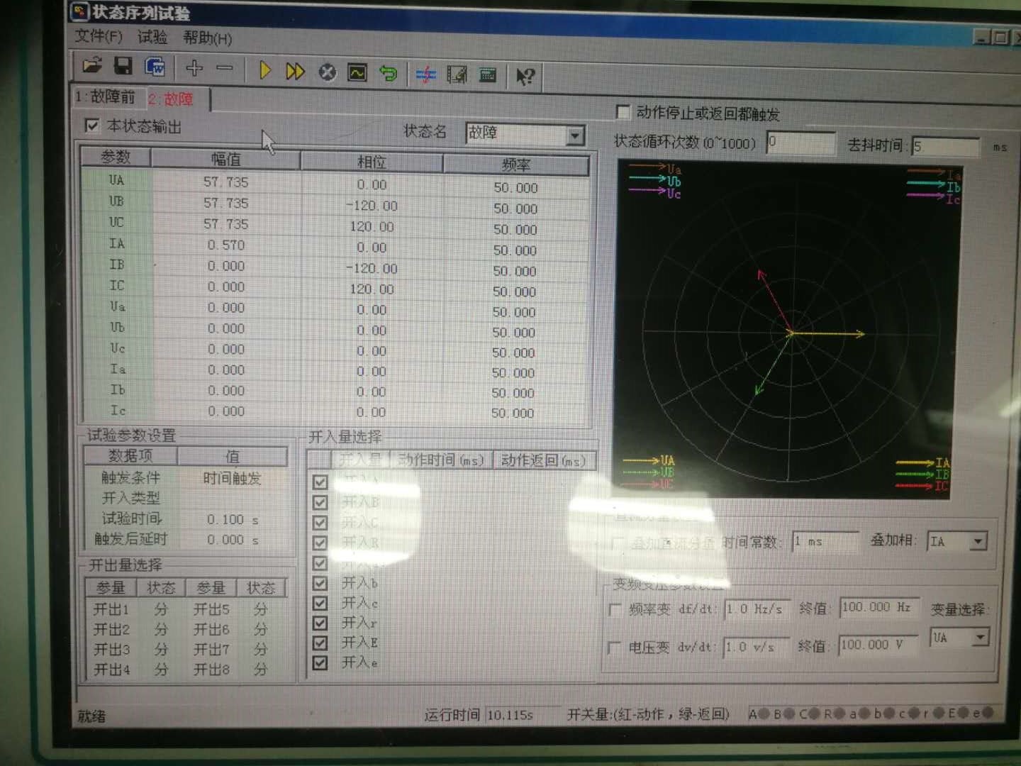 根據(jù)差動動作值1.2A計(jì)算可得,差動電流實(shí)驗(yàn)值1.2*0.95=1.14A,實(shí)驗(yàn)電流為0.57A。