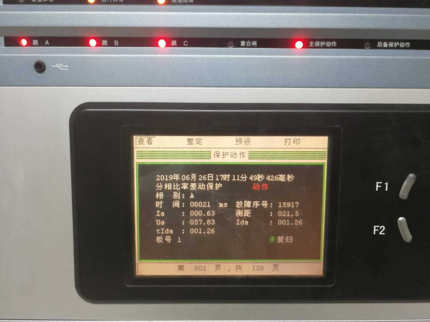 根據(jù)實(shí)驗(yàn)要求,本次實(shí)驗(yàn)測得整定值1.2A差動電流下保護(hù)性能滿足規(guī)程要求。