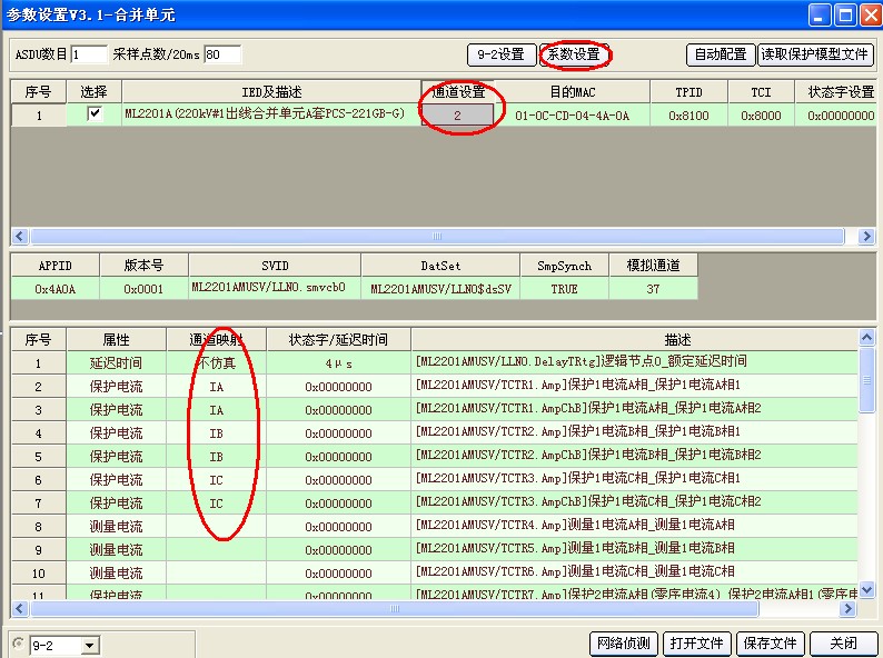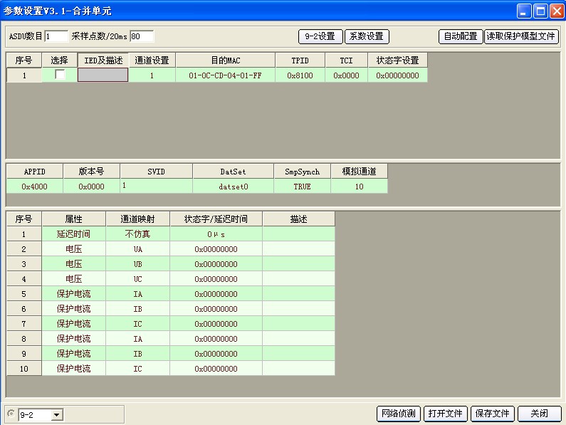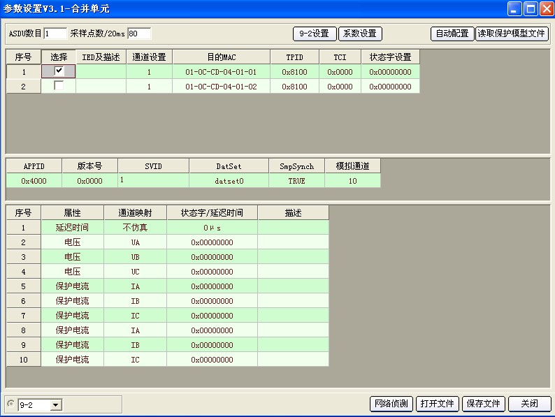 2)點(diǎn)擊上圖標(biāo)題欄中“61850”按鍵,進(jìn)入?yún)?shù)設(shè)置界面,選擇左下角“9-2”。