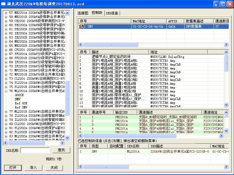 3) 讀取保護(hù)模型文件需要導(dǎo)入級(jí)聯(lián)母線PT合并單元的配置文件。