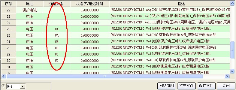 5)手動(dòng)配置通道映射UA、UB、UC對(duì)應(yīng)描述為所加母線電壓,通過此時(shí)刀閘位置確定具體母線,也可以選擇自動(dòng)配置通道映射,但需手動(dòng)修改不需要的通道映射,相對(duì)比較麻煩。