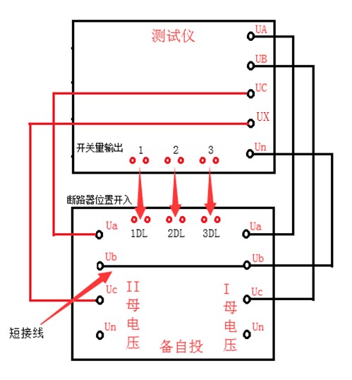 若沒有母線電壓,進(jìn)行試驗(yàn)則需要使用繼保儀給備自投裝置加兩組電壓。