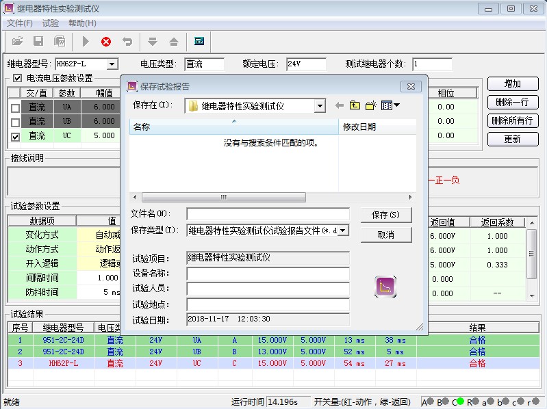 3、點(diǎn)擊“開始試驗”按鈕,多個繼電器將自動測試。