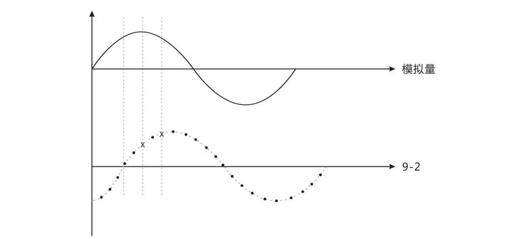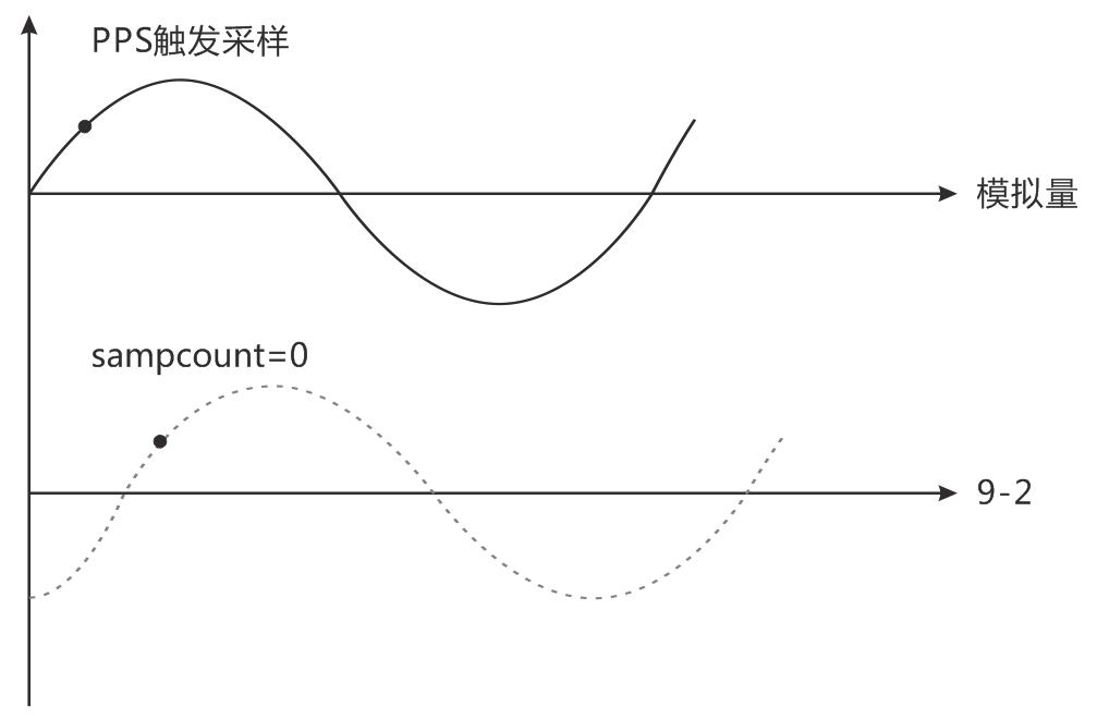 設(shè)置自身晶振控制采樣,此時有可能出現(xiàn)模擬量的采樣點無對應(yīng)的9-2點,則需插值計算出9-2點的大小,如上圖中X點需要插值計算得到。