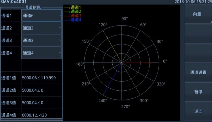 此外,NSA-60 還支持智能變電站核相與極性測試,用戶可選擇不同的通道進行核相分析,進行電壓和電流的幅值、相位、相序比對,并測試不同的通道所反映的極性情況。