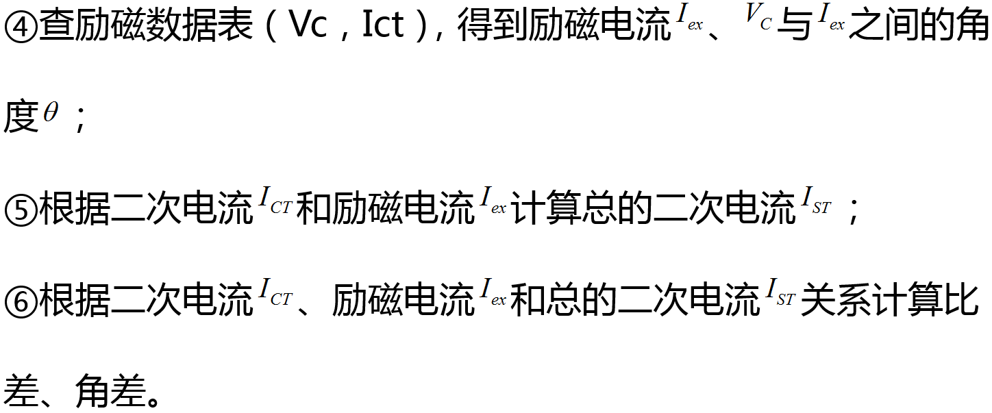 通過在二次加壓的方法,使得勵(lì)磁阻抗上的電壓與某種運(yùn)行狀態(tài)的電壓相同,即可模擬這種運(yùn)行狀態(tài),測(cè)量此勵(lì)磁電流,通過計(jì)算就能得到電流互感器在所模擬的運(yùn)行狀態(tài)下的變比、比差、角差和復(fù)合誤差。