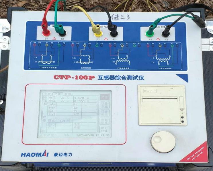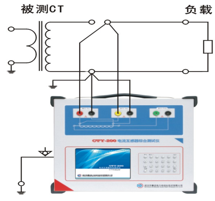 CTP系列互感器測試儀接地,S1-S2(源輸出)、M1-M2(輸出測量)接入二次端子箱保護繞組,P1-P2(感應(yīng)電壓測量)接一次側(cè)測試相。
