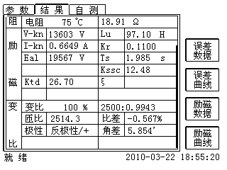 測試儀可根據(jù)給定負荷、勵磁曲線自動計算準(zhǔn)確限值。