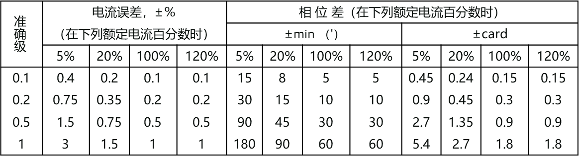 根據(jù)GB1208-2006及DL/T866-2004規(guī)定計量CT誤差限值不得超過下表: