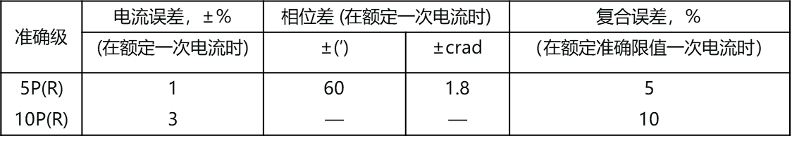 GB1208-2006及DL/T866-2004規(guī)定P級、PR級CT誤差限值不得超過下表: