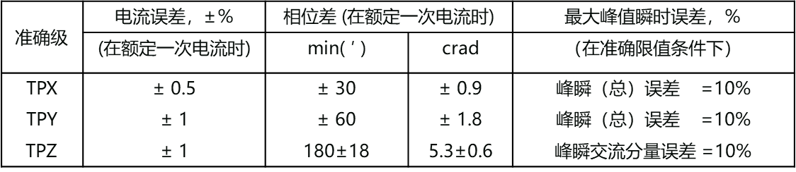 GB16847-1997及DL/T866-2004規(guī)定TP級CT誤差限值不得超過下表: