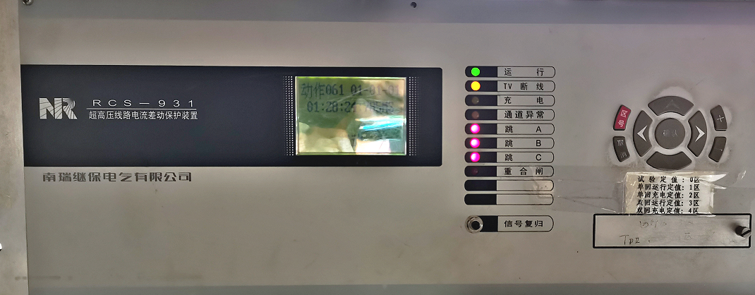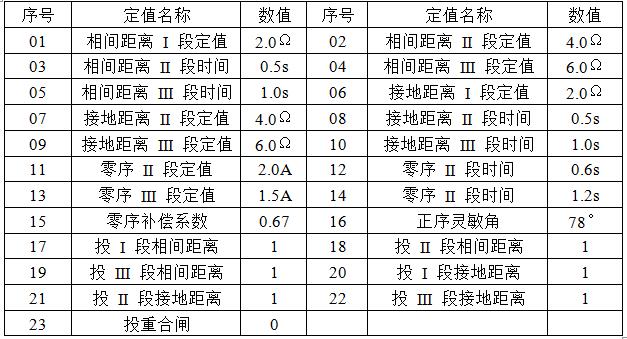 在“壓板定值”里,“投距離保護(hù)壓板”和“投零序保護(hù)壓板”置“1”,“投差動(dòng)保護(hù)壓板”置“0”。