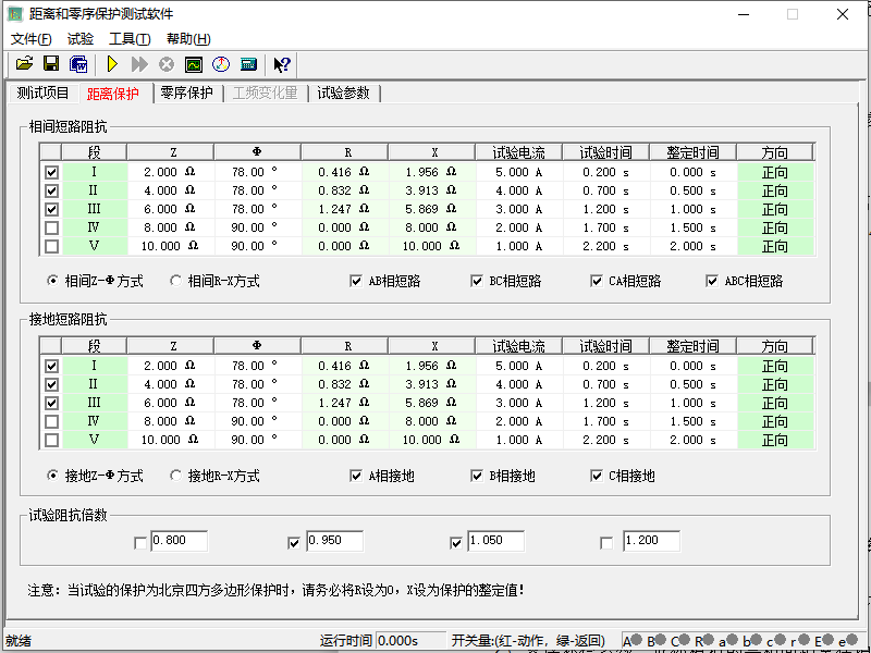 繼保之星-S60 自動(dòng)記錄距離與零序保護(hù)試驗(yàn)結(jié)果。