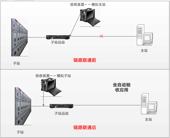 變電站監(jiān)控信息一體化驗收裝置 通過模擬調(diào)度主站,實時與變電站現(xiàn)場遠動機通訊,進行站內(nèi)同步驗收,將驗收信號批量發(fā)給調(diào)度主站,提高對點的正確性及快速性。