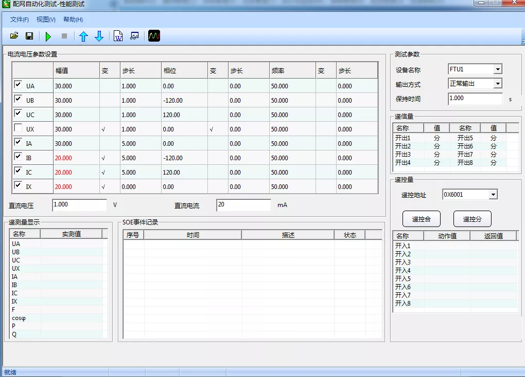 對配電終端輸入遙測量、遙信量并進(jìn)行遙控操作,通過通信記錄配電終端事件順序,遙控操作記錄進(jìn)行讀取,實現(xiàn)對配電終端歷史數(shù)據(jù)存儲功能檢測。