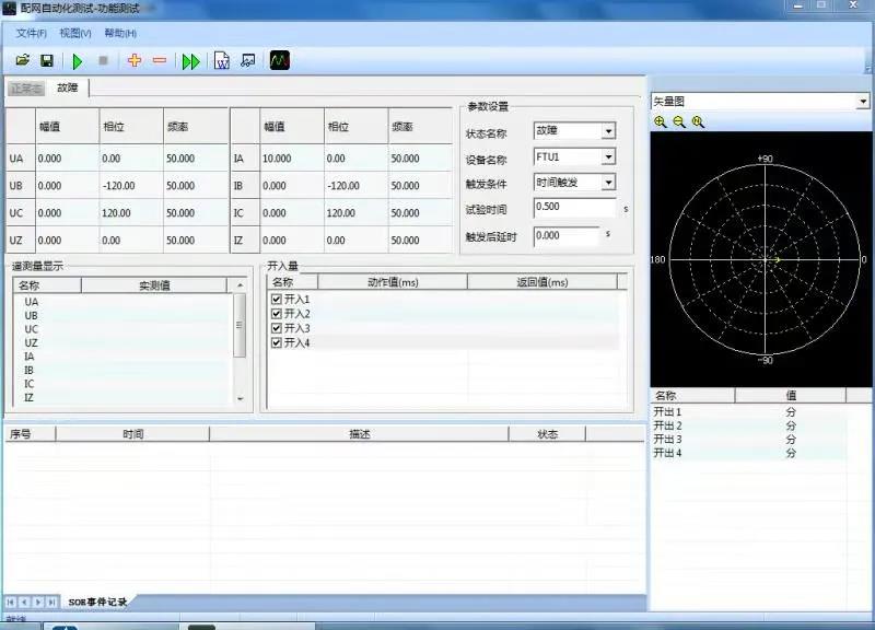 在不停電的狀態(tài)下,通過FA虛擬終端軟件虛擬一臺(tái)終端,并接入主站的前置交換機(jī),利用軟件模擬故障功能觸發(fā)事故信號(hào)、變電站出線開關(guān)分閘信號(hào),以啟動(dòng)配電網(wǎng)自動(dòng)化系統(tǒng)饋線自動(dòng)化功能。
