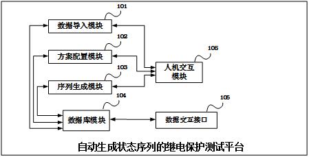 繼電保護(hù)測(cè)試狀態(tài)序列生成平臺(tái)主要包括數(shù)據(jù)導(dǎo)入模塊、方案配置模塊、序列生成模塊、數(shù)據(jù)庫(kù)、人機(jī)交互模塊、數(shù)據(jù)交互接口。
