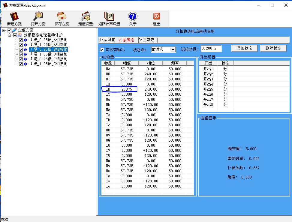 自動(dòng)生成故障前、故障態(tài)和正常態(tài)三種狀態(tài),針對(duì)0.95倍、1.05倍以及ABC三相不同的測(cè)試項(xiàng)目,生成不同的故障態(tài)結(jié)果,結(jié)果可進(jìn)行手動(dòng)修改。