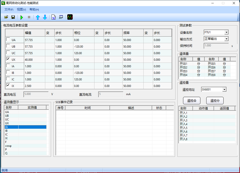 點(diǎn)擊開始或者按鍵盤“運(yùn)行”鍵,確認(rèn)后配電之星-P2200 開始輸出,觀察主站軟件的SOE事件監(jiān)視,動(dòng)作記錄。