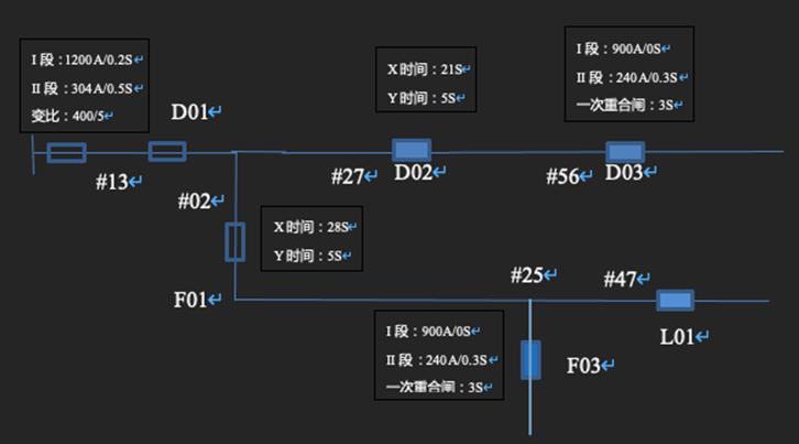 現(xiàn)場選取D01模擬變電站出線開關(guān),D02和F01三個點進行測試。