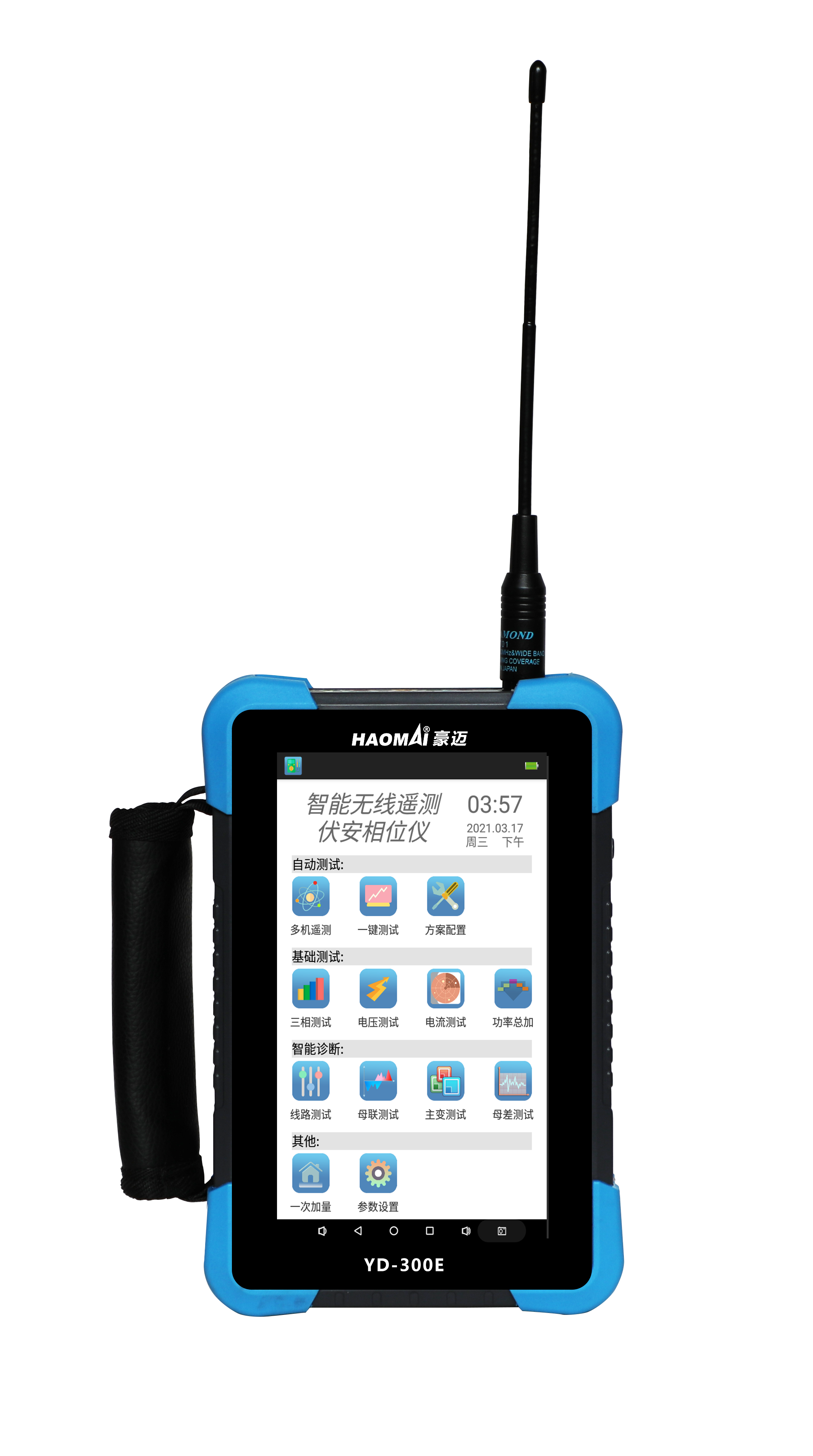根據(jù)電力系統(tǒng)變電站二次測(cè)試需求,特別是智能變電站二次模擬量分布測(cè)量需求,武漢豪邁自主研發(fā)了智能化多功能測(cè)試儀YD-300 無(wú)線遙測(cè)伏安相位儀,由測(cè)試主機(jī)和從機(jī)兩部分組成。
