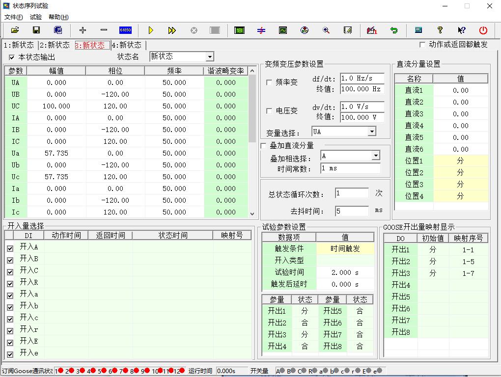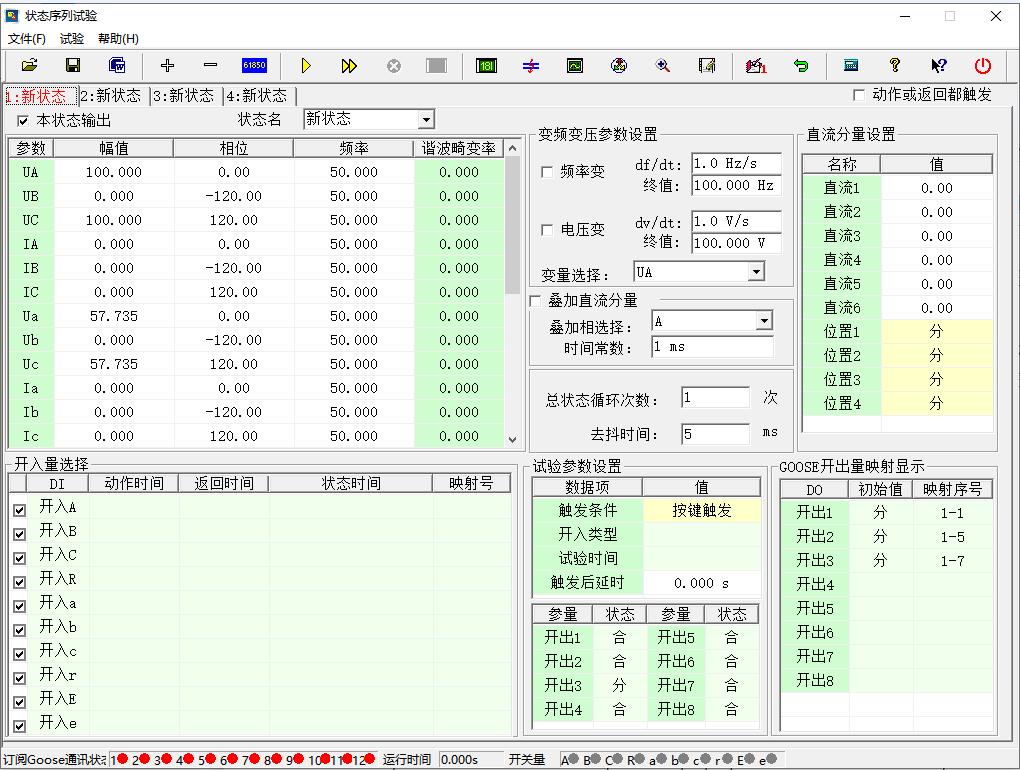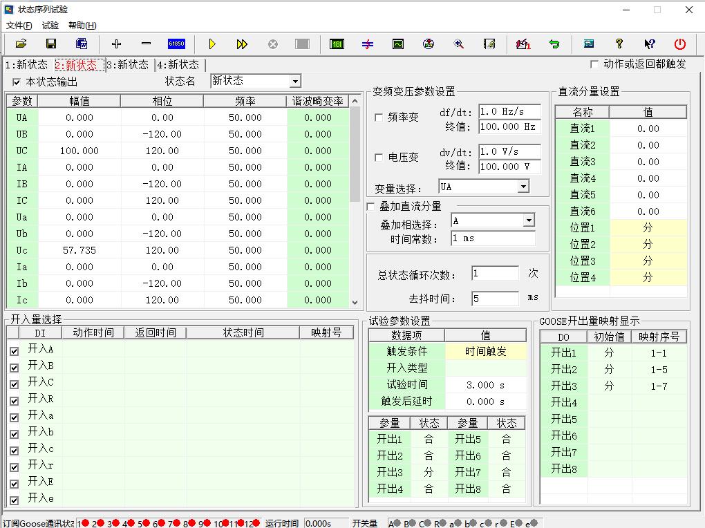 接線(xiàn)及裝置定值整定完成后設(shè)置繼保之星-7000 的狀態(tài)序列。