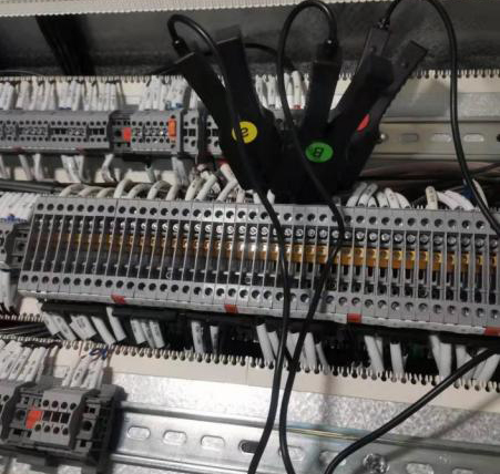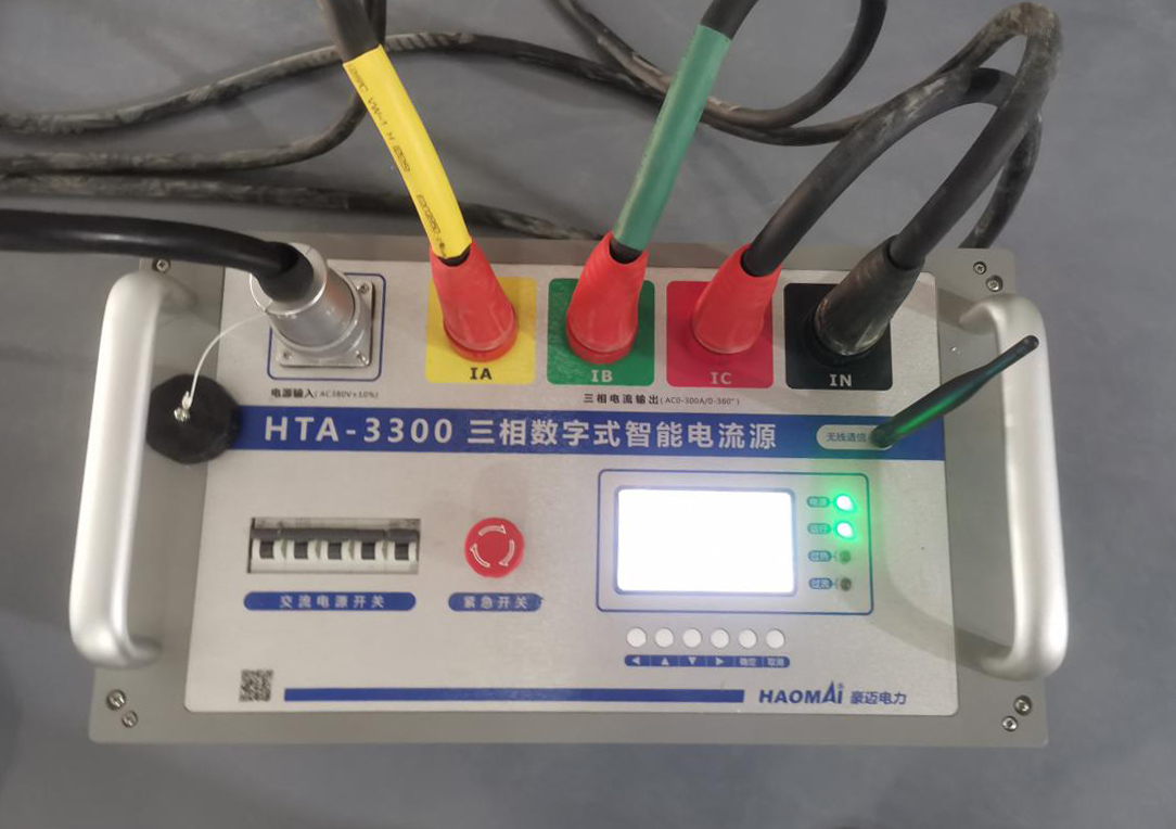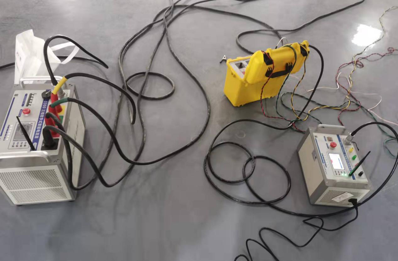 將電流源上的三相電流線接到CT一次側(cè)的進線側(cè),黑色的接到出線側(cè)(反向后的輸出值顯示為反極性的值),將無線遙控的電流測試線夾到要測試的二次繞組之間(在保護裝置上也可讀取二次值),注意繞組電流的流向,測量線的指向應與其相同,并且二次測試線應插入遙控對應相的入口,電壓源與升壓箱之間用航插電纜連接,然后將電壓線與PT的一次側(cè)連接,注意進出線的方向,將PT二次側(cè)與遙控相連,插入對應的電壓測量口內(nèi)即可進行電壓二次測量,也可在保護裝置上讀取。