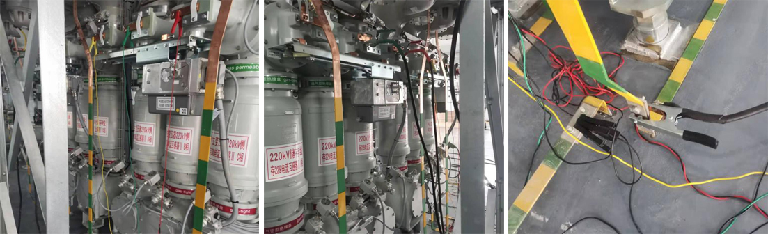 將HTV-6000 三相數(shù)字式智能高電壓源接至主變#4的220kV側(cè),接在2308開關的上端,2308斷開,合上230斷路器、2301開關,將電壓接到220kV的1母線上,合上互01PT的開關,使其過母線的PT,即可在保護裝置上查到二次電壓值。將HTA-3300 三相數(shù)字式智能大電流源接到儲存線,接到2298開關的上端,合上2298、229、2301斷路器或開關,將電流接到220kV的2母線上,如測試的是#3號主變高壓側(cè)220kV間隔,則合上2268、226、2262,使電流從存儲線流到#3號主變高壓側(cè)間隔上,形成回路,即可在保護裝置上查到此間隔的二次電流值。