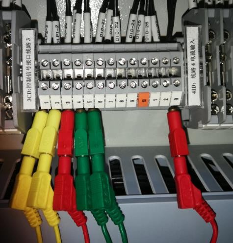 配電終端與開(kāi)關(guān)柜的控制連線(xiàn)在配電終端側(cè)通過(guò)端子排連接。 首先拔出配電終端一次側(cè)線(xiàn),使用絕緣膠帶包裹裸露端子,確保端子不會(huì)觸碰短路引起開(kāi)關(guān)柜誤動(dòng)作,同時(shí)對(duì)拔出的連線(xiàn)粘貼編號(hào)標(biāo)簽, 防止恢復(fù)接線(xiàn)時(shí)接錯(cuò)端子。