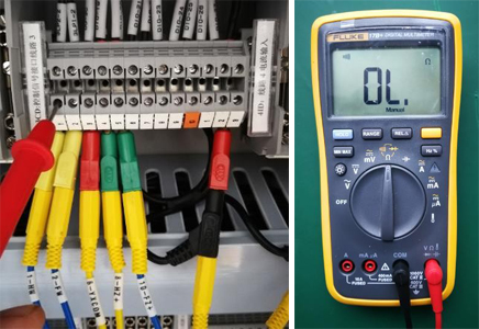 4)如果此時(shí)聽(tīng)到萬(wàn)用表發(fā)出“滴——”的聲音,表示端子接線(xiàn)正常,否則需要查看電纜接線(xiàn),排除問(wèn)題。