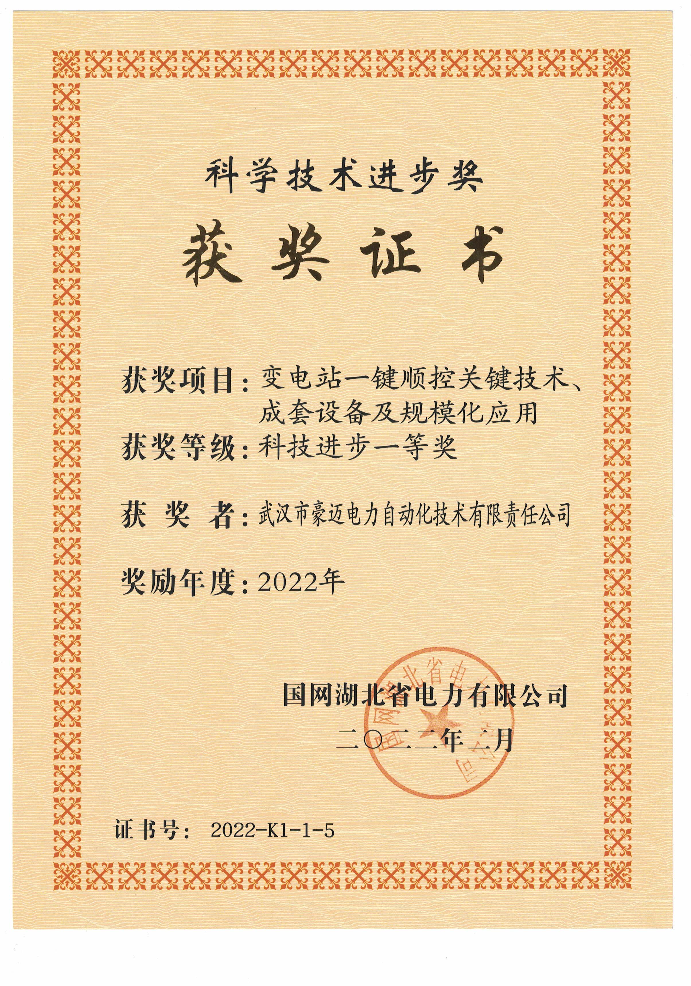 近日,武漢豪邁參與的創(chuàng)新項目《變電站一鍵順控關(guān)鍵技術(shù)、成套設(shè)備及規(guī)?;瘧?yīng)用》經(jīng)國網(wǎng)湖北省電力有限公司評審,榮獲國網(wǎng)湖北省電力科技進步一等獎。