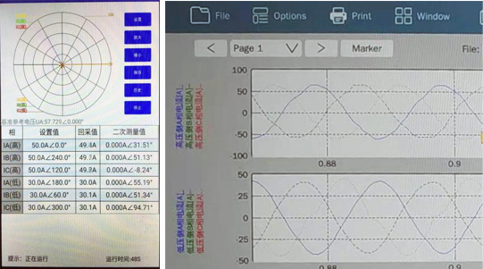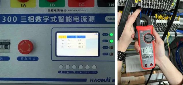 此時用鉗表在二次側測到高壓側的二次電流幅值,可以看出高壓側輸出與變比正常,再進行低壓側手動模式加量。