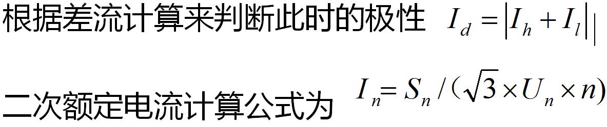 高壓側的實際電流為 45A ,低壓側為 30A ,計算得出,高壓側為 1.44 Ie ,低壓側為 0.044 Ie ,而在錄波裝置上讀到的差流值約為 1.4 Ie ,符合在此電流條件下高低壓側極性相反時公式計算得出的差流值 1.4 Ie ,因此極性正確。