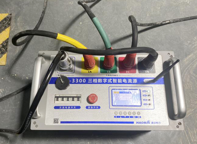 試驗(yàn)設(shè)備: HTA-3300三相數(shù)字式智能大電流源、HTV-6000三相數(shù)字式智能高電壓源、YD-300智能電流電壓源無(wú)線遙控主機(jī)