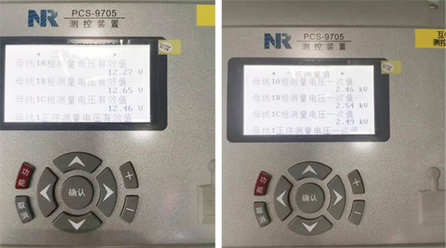 通過(guò)一次持續(xù)加量,在二次設(shè)備查看電流電壓的幅值和相位,從相位表上的矢量圖可以判斷極性是否正確。 由CT一次側(cè)加126A,二次側(cè)測(cè)得電流為0.04A,符合3150A/1A的變比。 電壓一次側(cè)加2500V,二次側(cè)電壓為12.46V,變比在基本誤差范圍之內(nèi),符合要求。