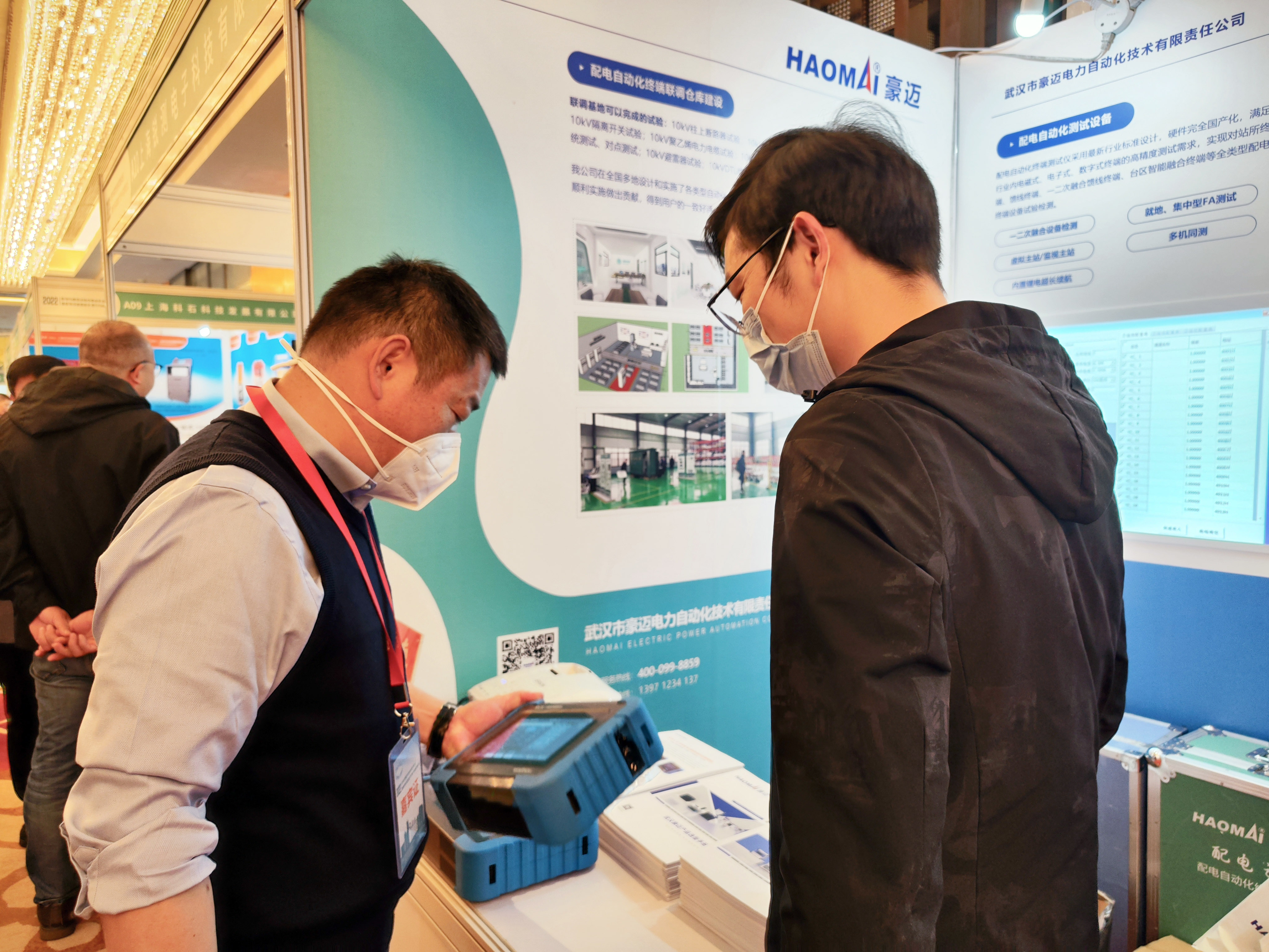 會(huì)議現(xiàn)場(chǎng),武漢豪邁展示了配電之星-P2200A5、配電之星-P10、配電之星-P2200A1等多款配電自動(dòng)化終端測(cè)試儀。
