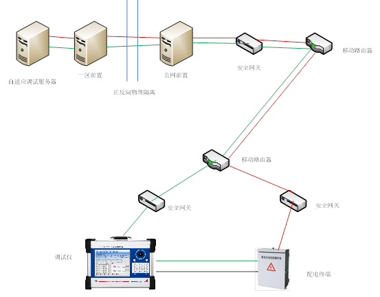 配網(wǎng)自動對點系統(tǒng) 是智能一體化、高度自動化的測試平臺,實現(xiàn)分布式架構(gòu)測試。 系統(tǒng)由配電自動化主站與配電自動化測試儀通過無線網(wǎng)絡(luò)協(xié)議交互,配電自動化測試儀通過自動測試方案給配電終端施加不同的模擬量和狀態(tài)位置,配電自動化主站監(jiān)視到終端行為后,通過主站安全接入?yún)^(qū),由移動運營商無線4G專用網(wǎng)絡(luò),傳輸給配電自動化測試儀進(jìn)行處理和運算。