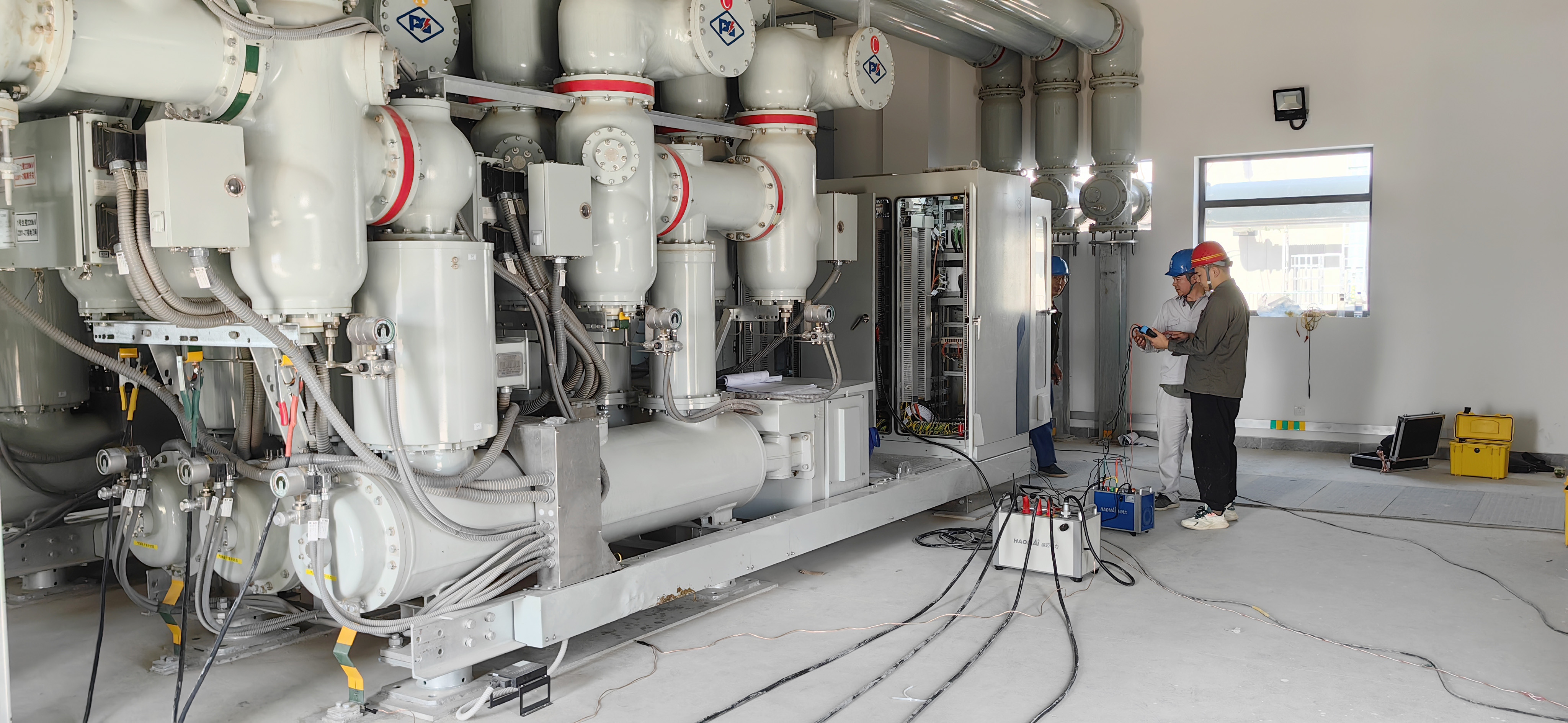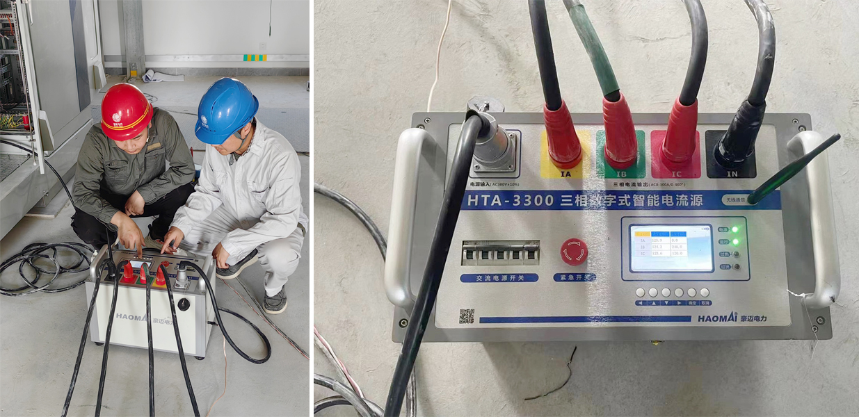 近期,國網(wǎng)某電力公司即將投運的220kV變電站使用HTA-3300 三相數(shù)字式智能大電流源搭配HTV-6000 三相數(shù)字式智能高電壓源,完成站內GIS設備的相量檢查與極性校驗工作。