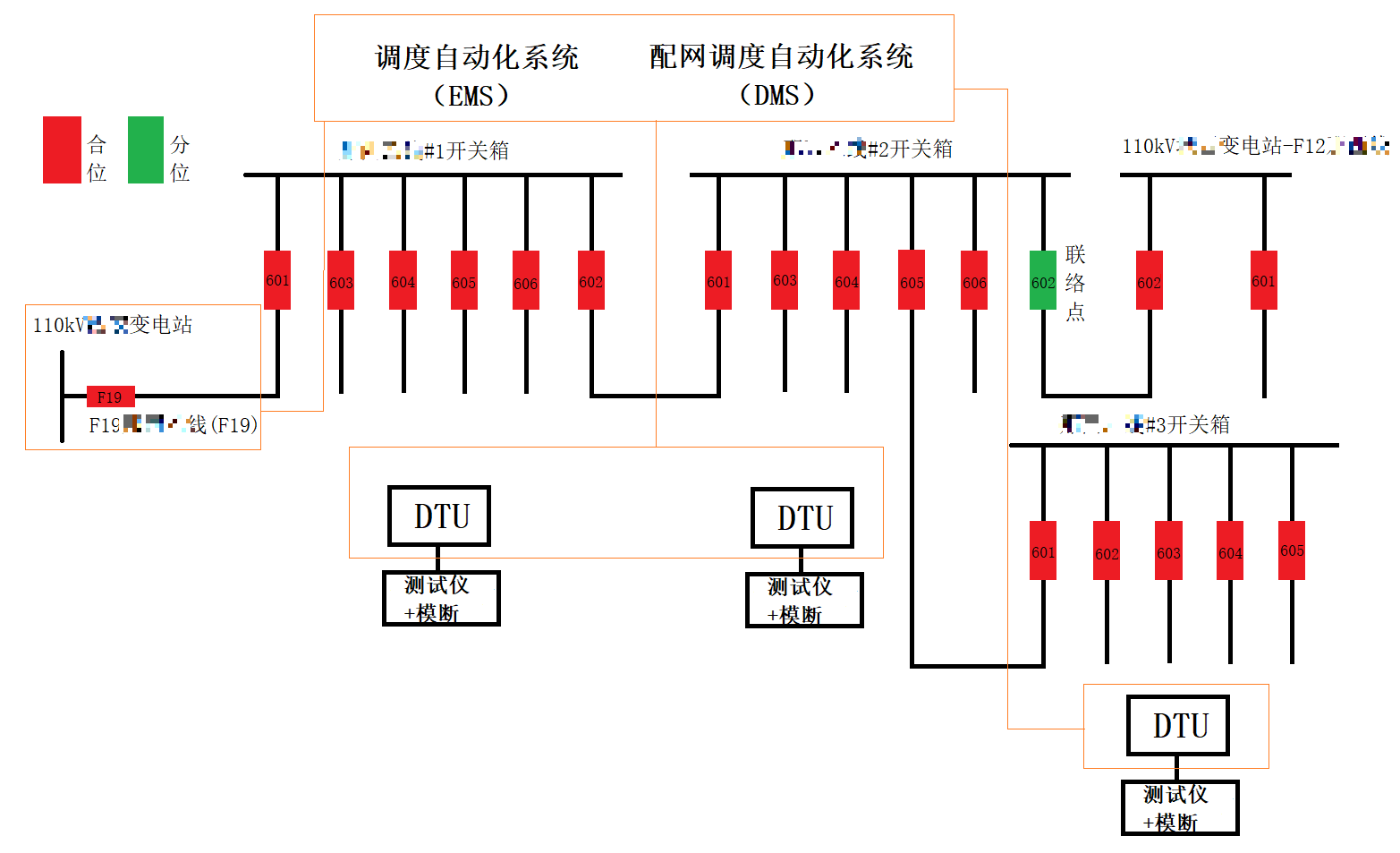 ⑤測(cè)試過(guò)程中主站測(cè)試人員或測(cè)試廠家截取主站自愈啟動(dòng)、故障隔離、無(wú)故障區(qū)域恢復(fù)的畫(huà)面,記錄測(cè)試結(jié)束后各個(gè)測(cè)試點(diǎn)的開(kāi)關(guān)位置信息。