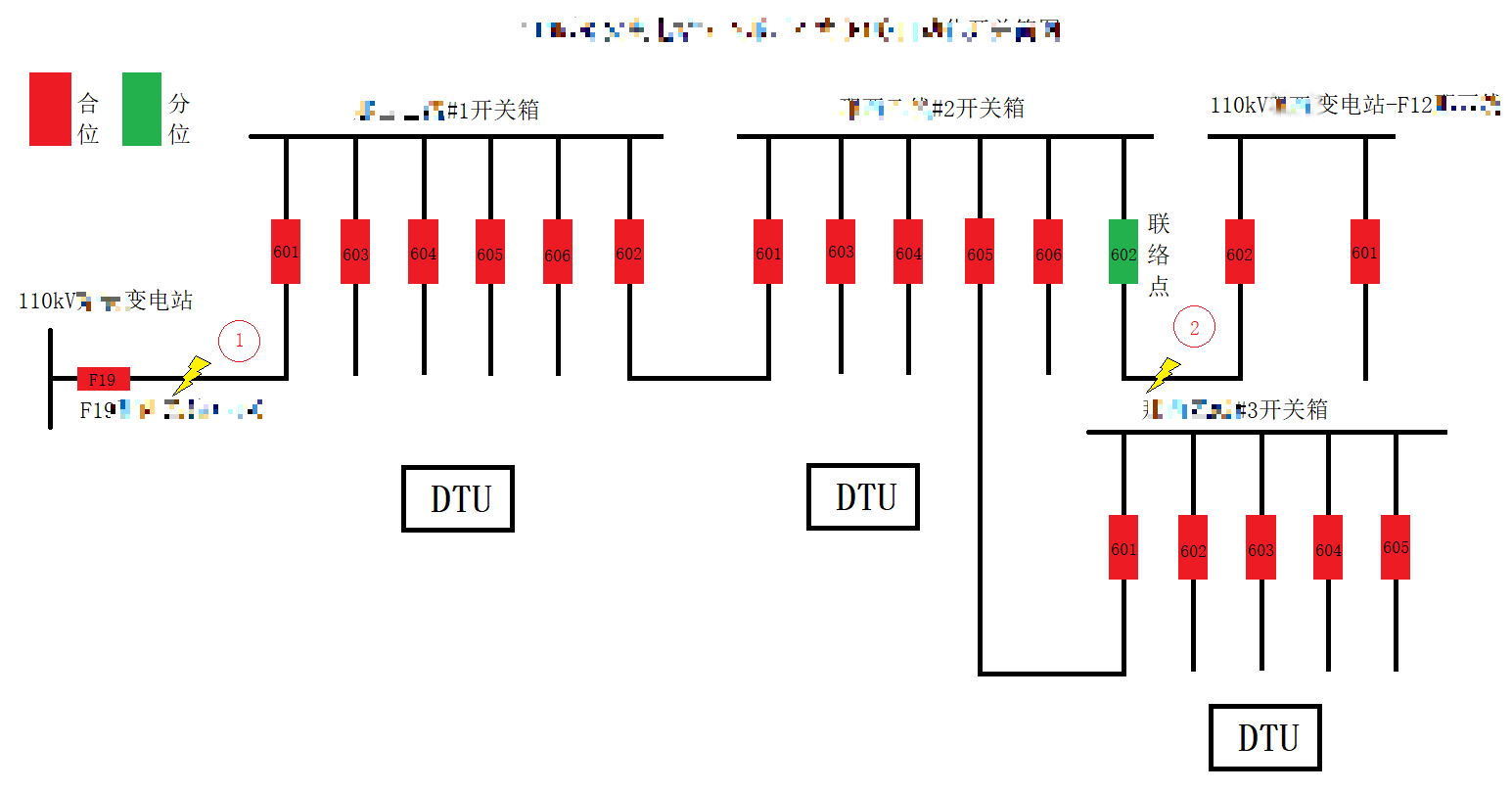 ①確定故障點(diǎn),故障點(diǎn)上游所有分段開(kāi)關(guān)作為測(cè)試點(diǎn),故障點(diǎn)下游并且緊鄰故障點(diǎn)的一個(gè)分段開(kāi)關(guān)作為測(cè)試點(diǎn),測(cè)試線路的聯(lián)絡(luò)開(kāi)關(guān)作為測(cè)試點(diǎn)。