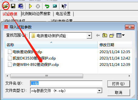進入電鐵差動保護曲線搜索 專 用試驗界面。