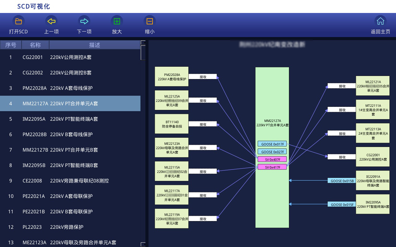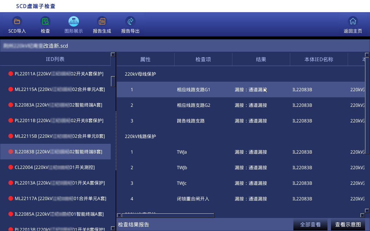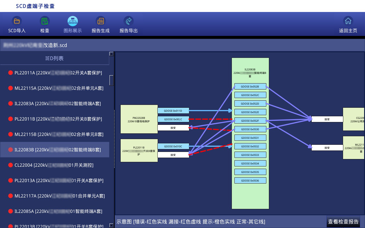 目前,智能站虛回路核查一般采用集成配置工具,或以單個(gè)設(shè)備為中心的可視化工具進(jìn)行人工核查,此類方法不能以繼電保護(hù)專業(yè)視角展示二次系統(tǒng)全景,操作復(fù)雜,對(duì)使用人員的技術(shù)水平要求很高。 通常220kV智能站的虛回路約2000-3000條,校核工作量大,效率低,容易出現(xiàn)漏查情況。